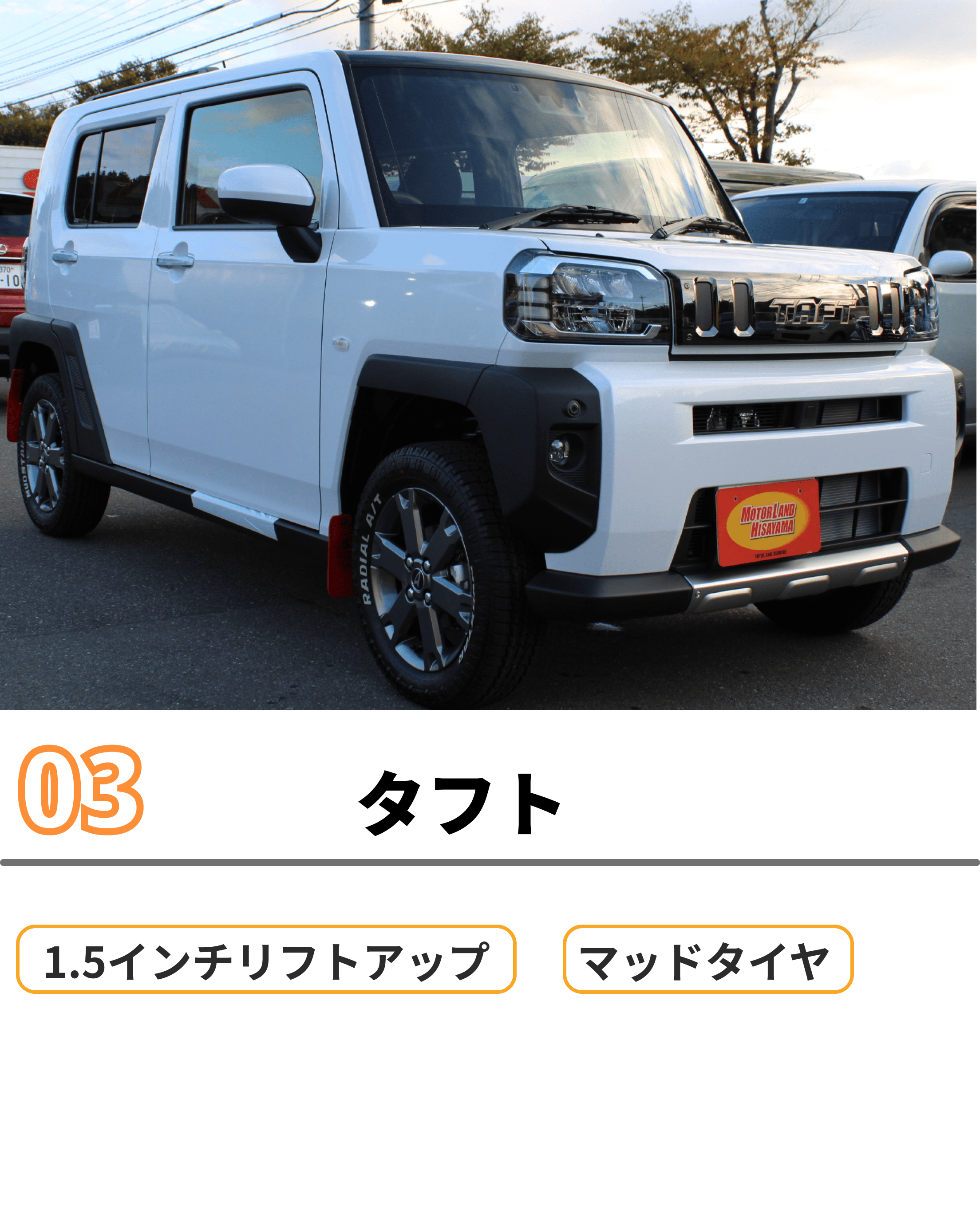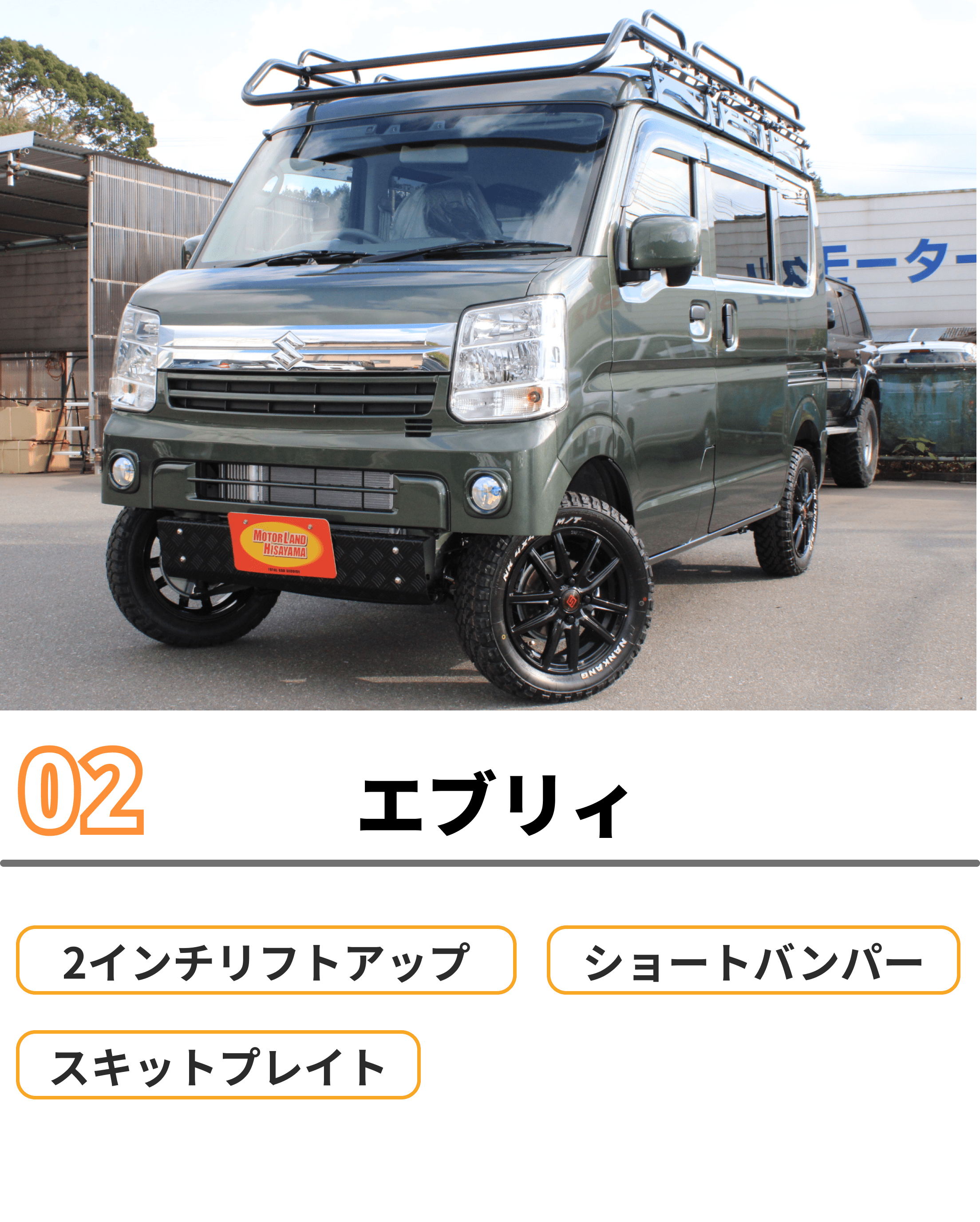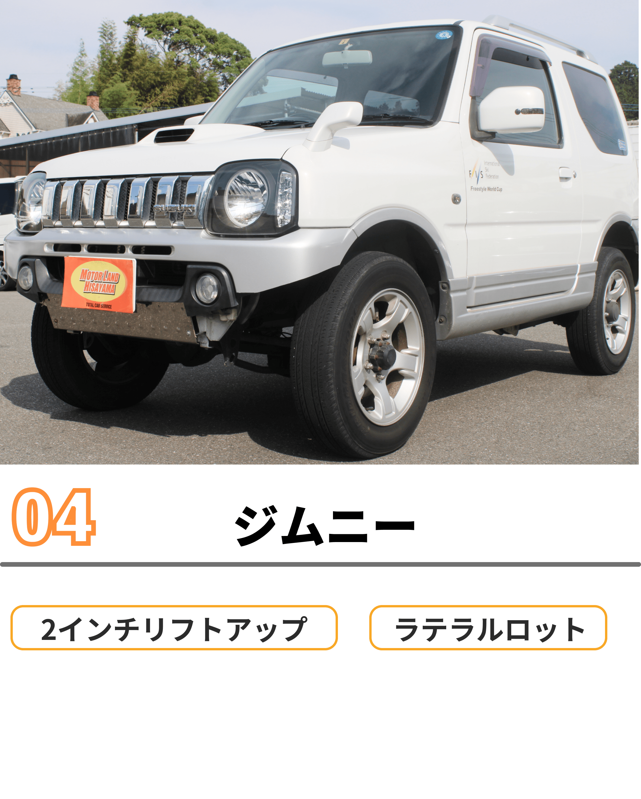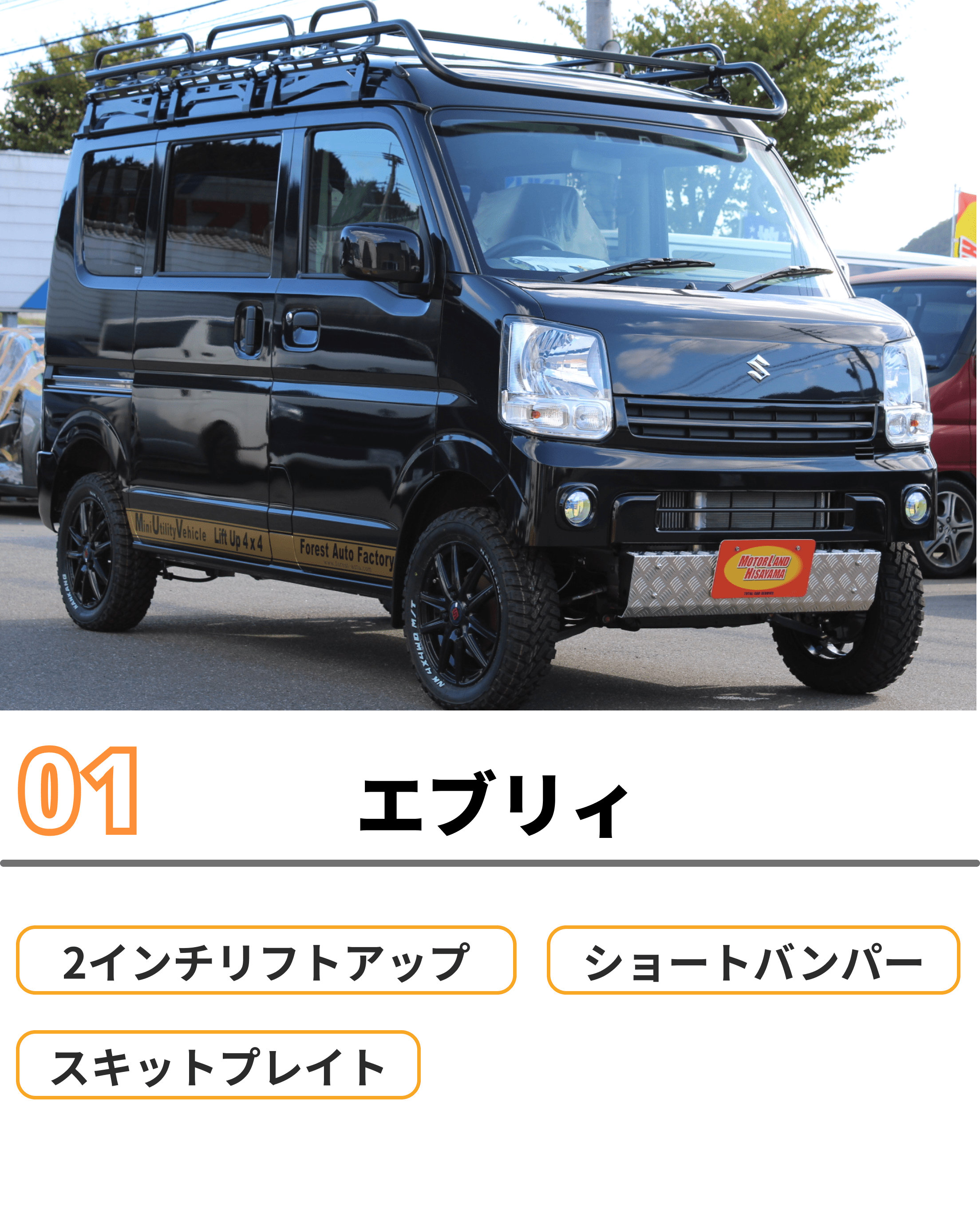 当店ではリフトアップ車、リフトアップ製品の販売を行っております。